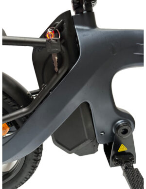 Systu00e8me de pliageu00a0compact.u00a0Elle est dotu00e9e du2019un systu00e8me de pliage au centre du cadre et sur la potence / guidon. Pour un maximum de compacitu00e9, il suffit de baisser le guidon u00e0 sa hauteur la plus basse, ainsi que la selle, puis de procu00e9der au pliage du guidon et enfin celui du cadre.